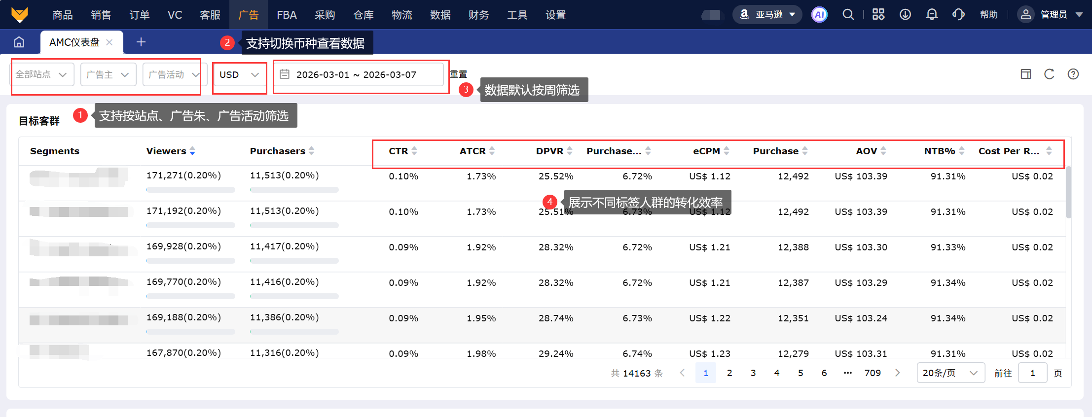 展示基于 AMC 逻辑挖掘的高价值细分人群,用于横向对比不同标签人群的转化效率。数据按【客群标签(Segment)】聚合。