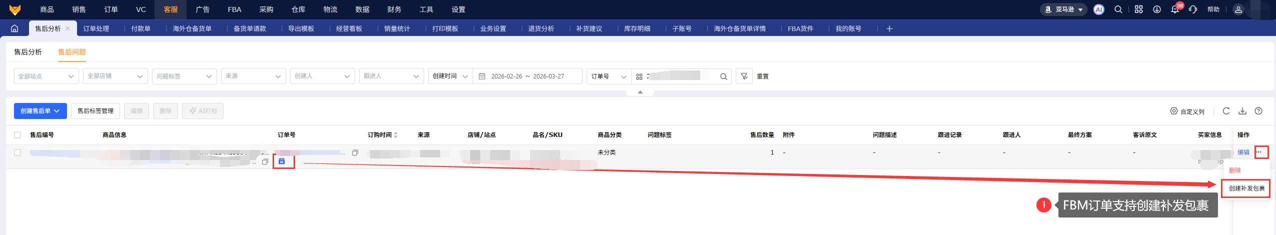 针对FBM订单:支持创建补发包裹(对应业务:订单处理-已发货-补发包裹)。