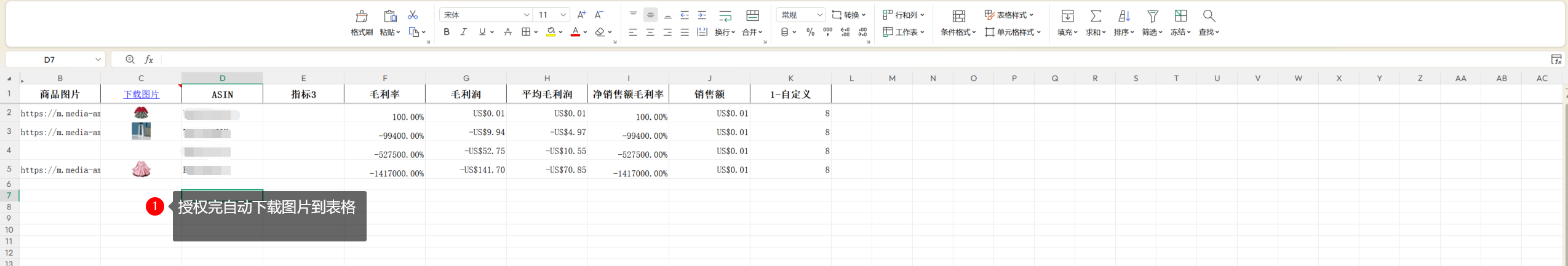 点击“授权”后台图片会自动下载到表格中,根据文档中产品数量的多少,几秒到几小时不等。