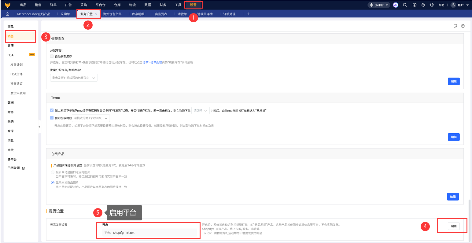 支持线上发货的平台:亚马逊、Temu、TikTok、Walmart(灰度)、Mercado、Lazada、Shopee、Ozon(灰度)、Coupang、Aliexpress、Wayfair、eBay(灰度)、Shein