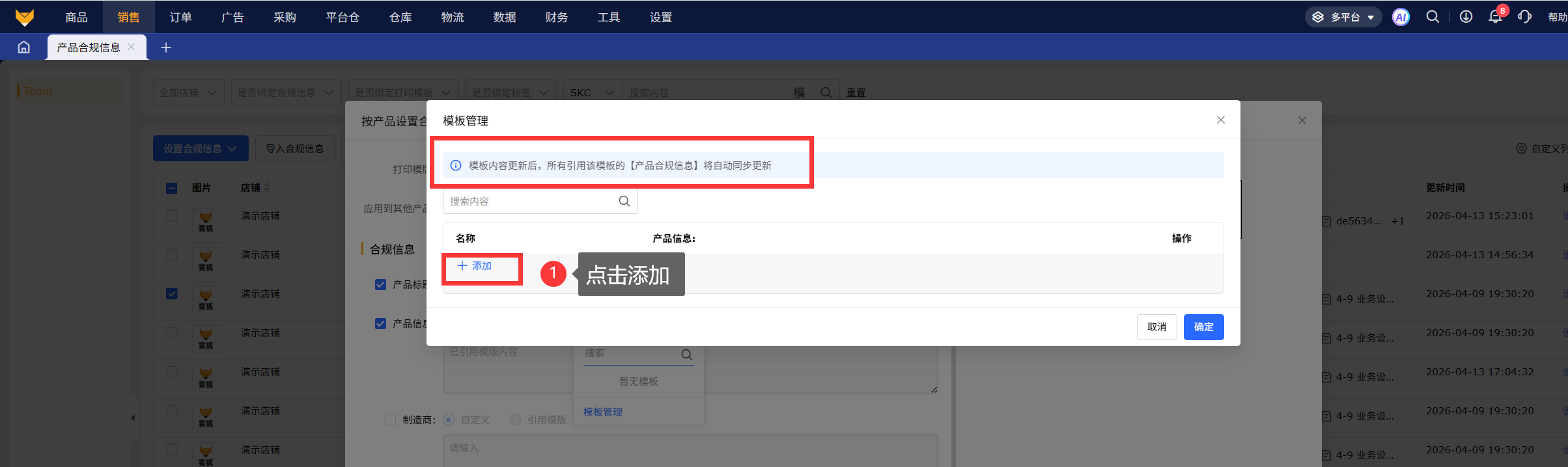 模板更新后,所有引用该模板的【产品合规信息】将自动同步更新。