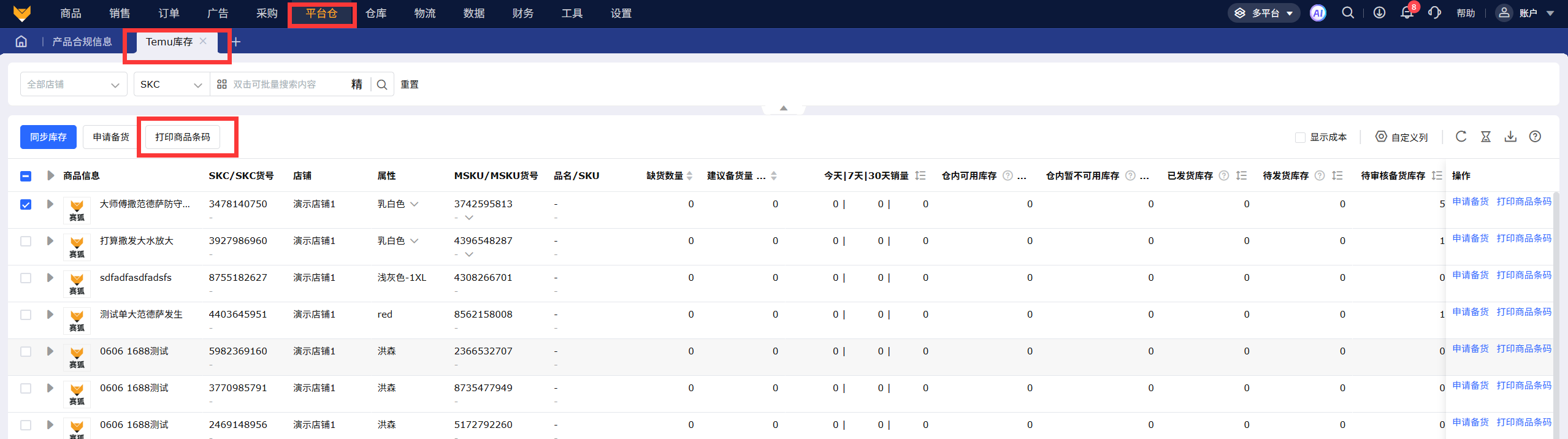 1、Temu库存-打印商品条码
