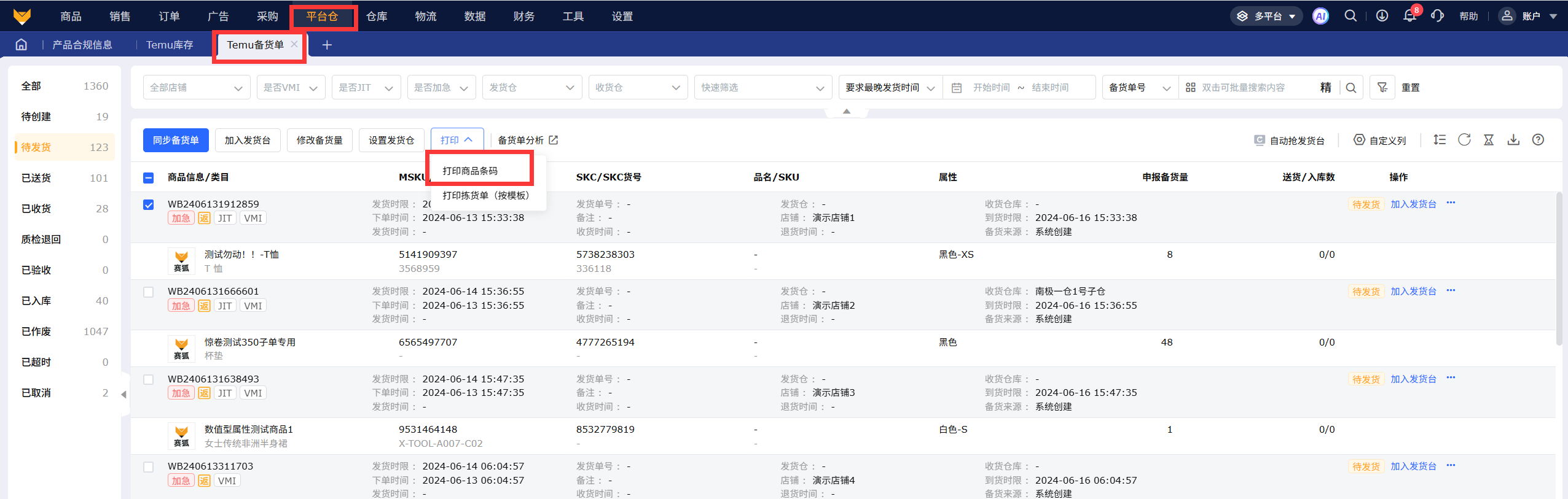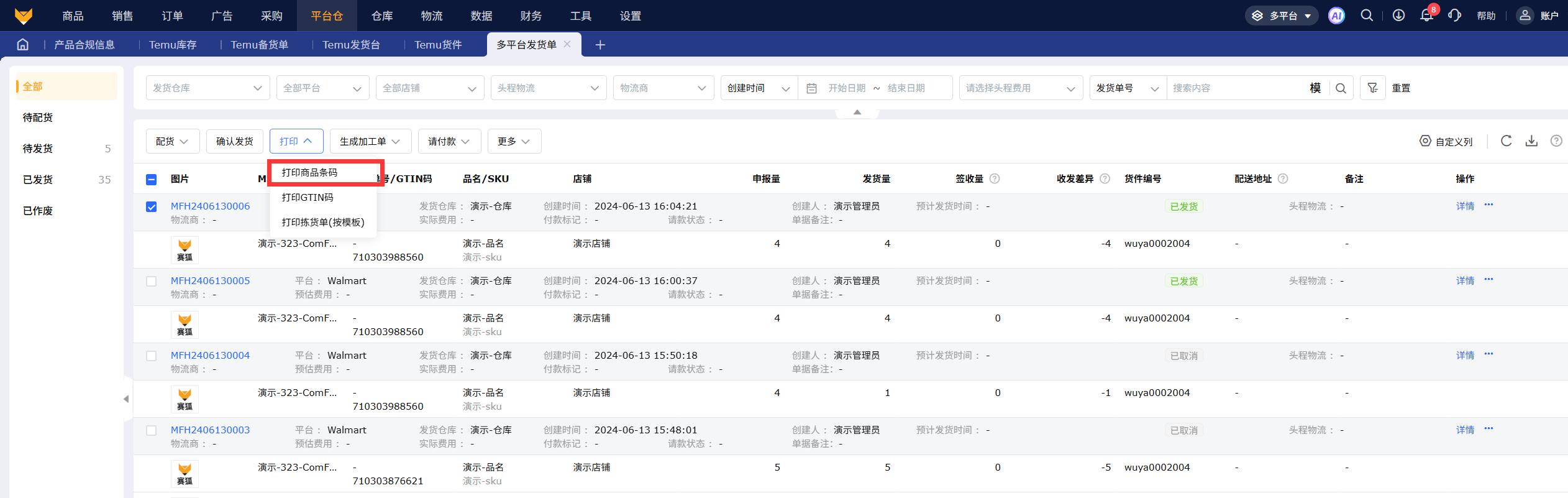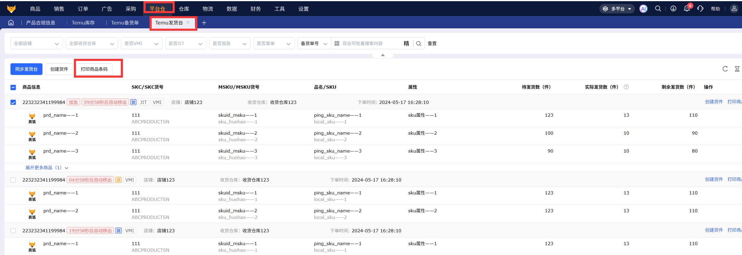 4、多平台发货单-Temu打印商品条码