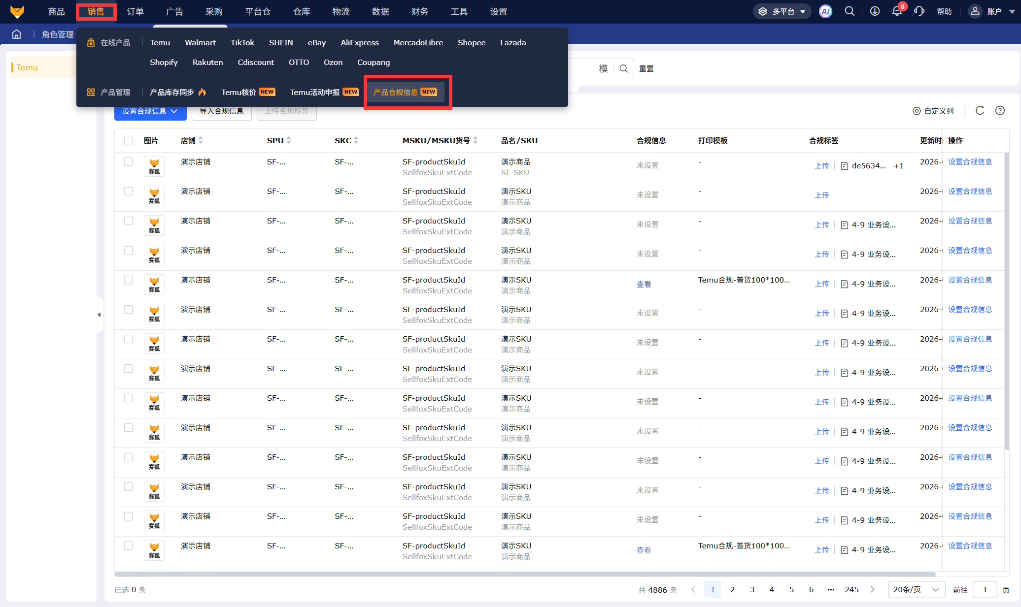 【多平台】-【销售】-【产品合规信息】。