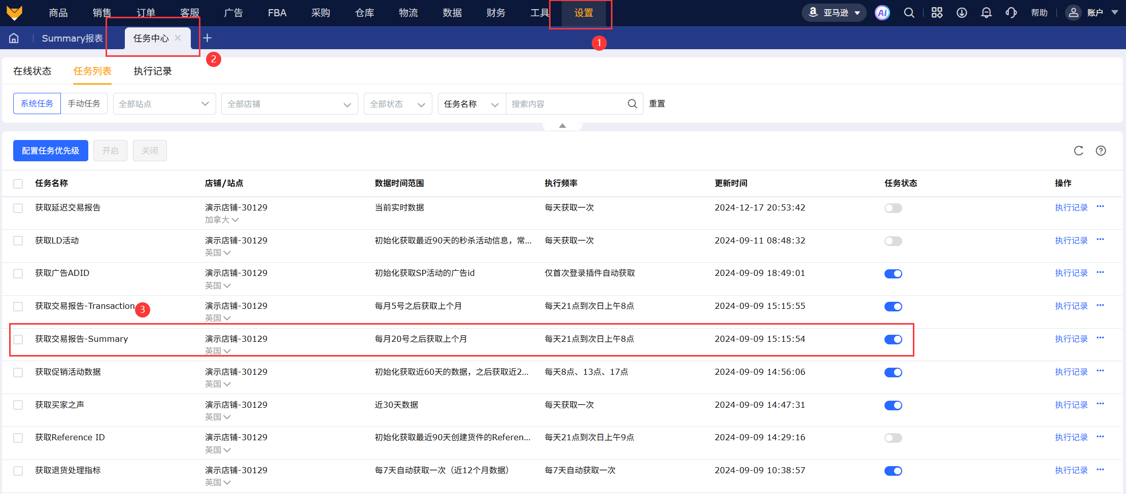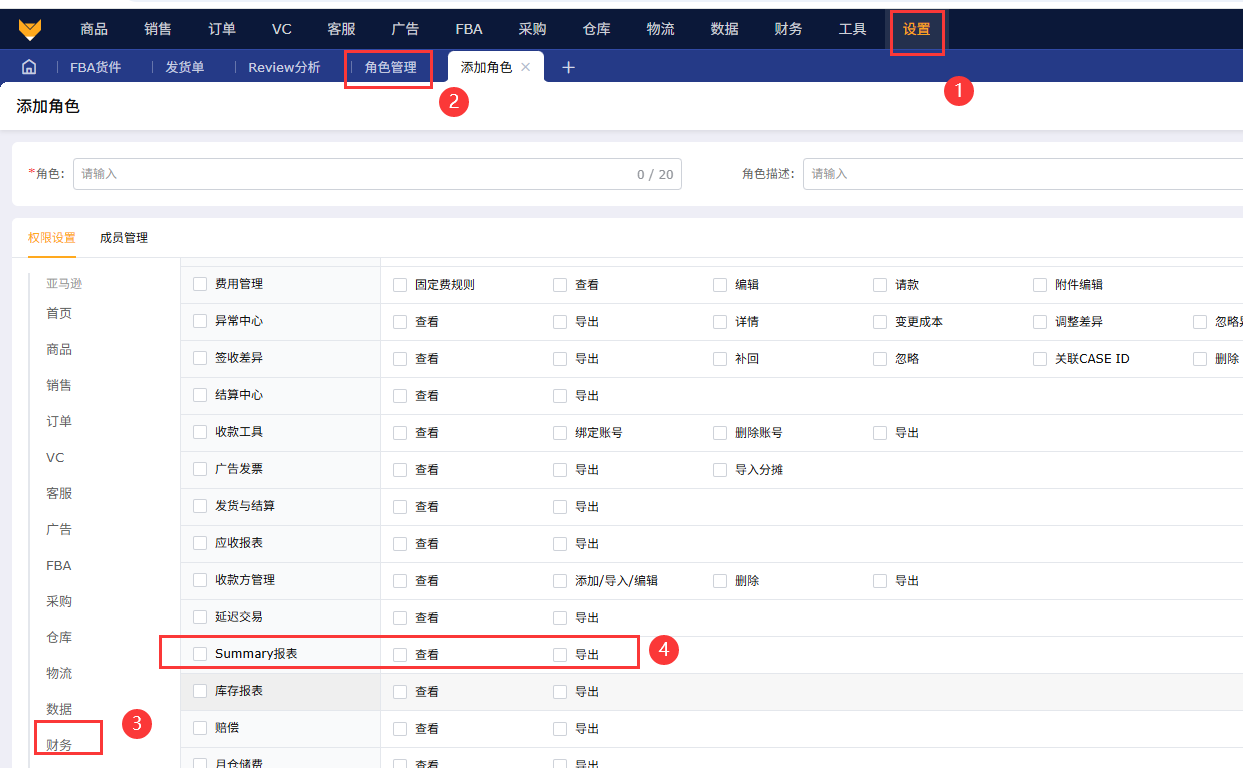 【设置】-【角色管理】-【财务】-【Summary报表】