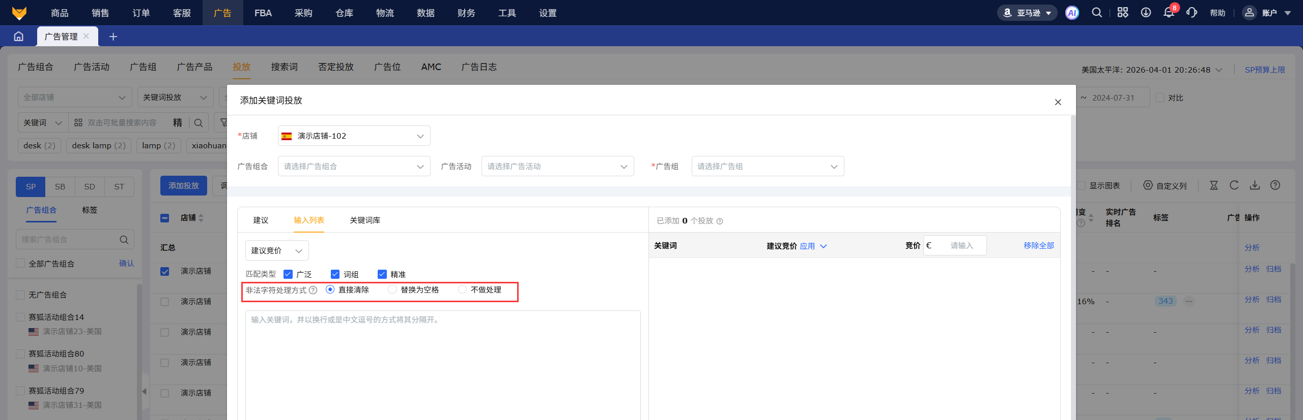 Q15:投放以及否定投放添加关键词时,为什么添加的关键词会被清空