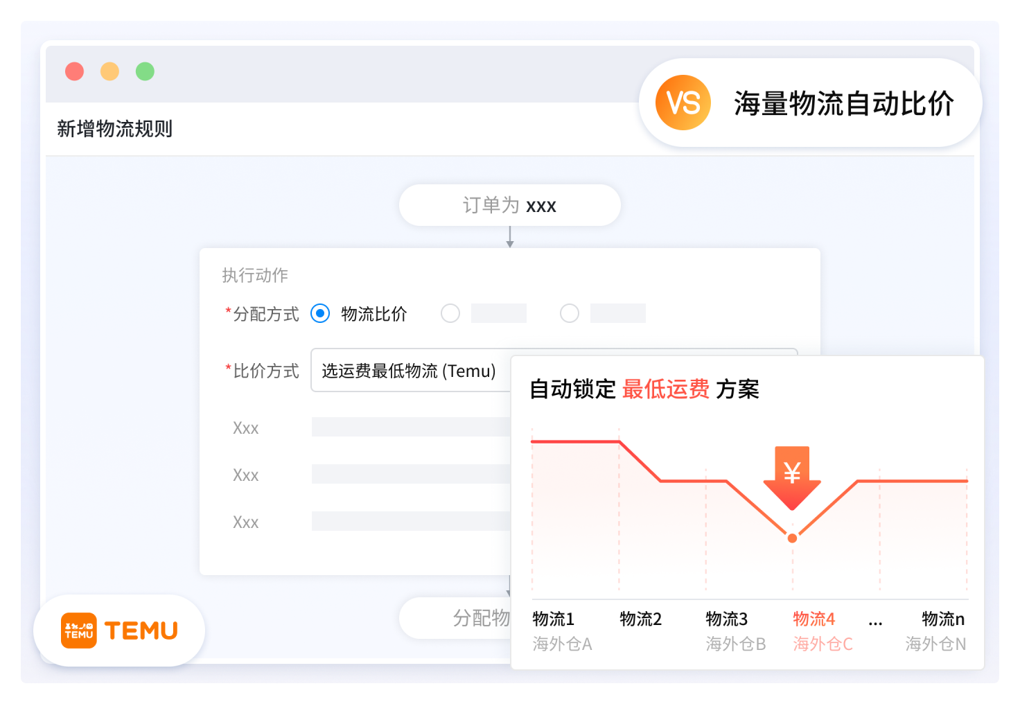 Temu在线下单发货,无需维护运费模板,即可实现全网实时自动物流比价