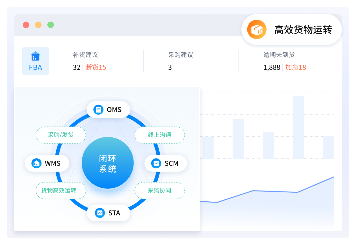 创新型OMS+WMS+STA-SCM闭环系统,解决亚马逊大宗采购/发货、 员工高频线上沟通、供应链长周期协同等特有场景,助力卖家高效货物运转